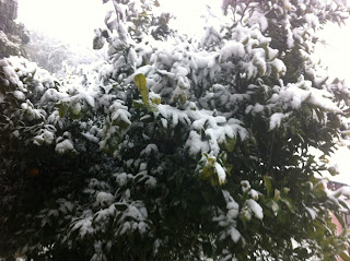 Yesterday, mid-morning, people in my area started posting pictures on Facebook of snowy cars and houses with captions that said, "Snow in Yoko!" For a minute I thought, "How nice...." and for some reason completely forgot I lived in Yokosuka. A few seconds later when it all clicked, I ran to my window and flung open the curtains to discover HUGE, CHUNKY snowflakes falling to the ground. It was not only snowing, it was a full blown snow storm. The snow fell for a few hours, most of it sticking. Schools were let out early, roads were closed and the base shut down allowing only essential personnel to continue working.